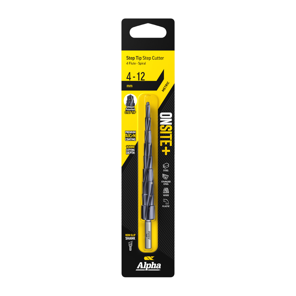 With the patented step tip design eliminating pre-drilling, the 10mm deep steps allowing for drilling in thicker materials and AlCrN coating for tool bit durability and longevity, you’re now saving, money, time and a lot of onsite stress!10mm Cutting Depth