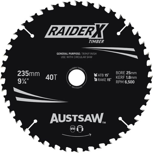 Austsaw RaiderX Timber Blade 235mm x 25 Bore x 40 T Thin Kerf